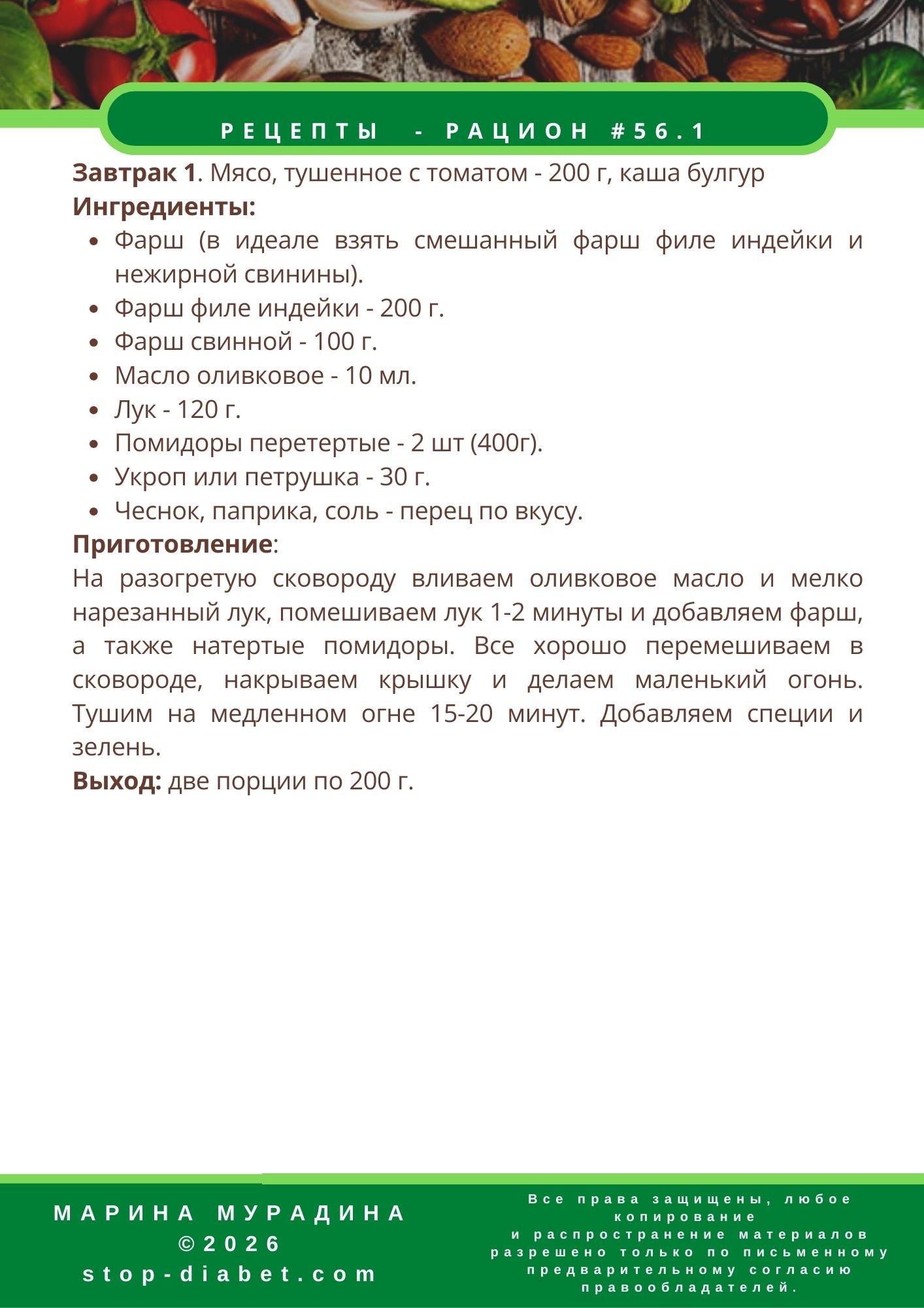ФОП Марина Мурадина ИНН(ЕГРПОУ): 2831620380 © 2022 Марина Мурадина. Все права защищены, любое копирование и распространение материалов разрешено только по письменному предварительному согласию правообладателей. Мы из Украины Для связи: ask@stop-diabet.com